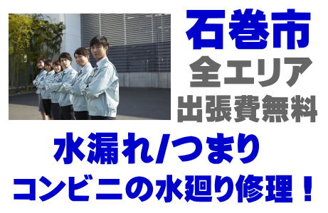石巻市でコンビニエンスストアの水廻り修理をPROのスタッフが対応。グリストラップのつまり、排水溝清掃、シンクのつまり、蛇口の水漏れ、高圧洗浄などはお任せください。