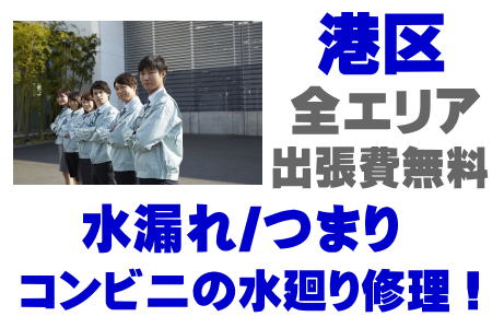 港区でコンビニエンスストアの水廻り修理をPROのスタッフが対応。グリストラップのつまり、排水溝清掃、シンクのつまり、蛇口の水漏れ、高圧洗浄などはお任せください。